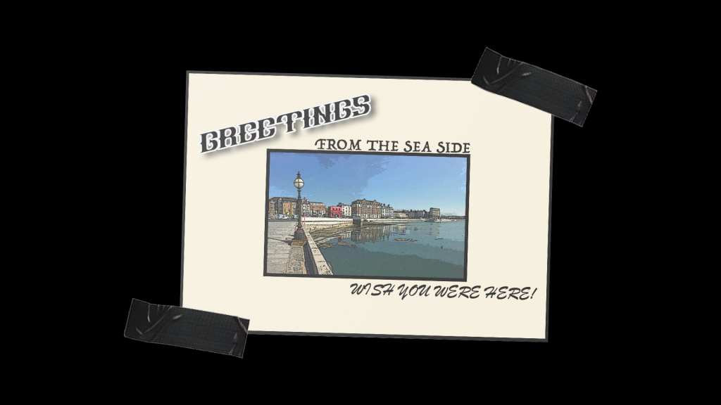 In the top right hand corner, I put together a simple post card style asset that additionally has also been taped down with tape. The postcard is an instant symbol of British sea sides as they are often found in small shops along sea fronts, which is why I felt it was appropriate to include them.