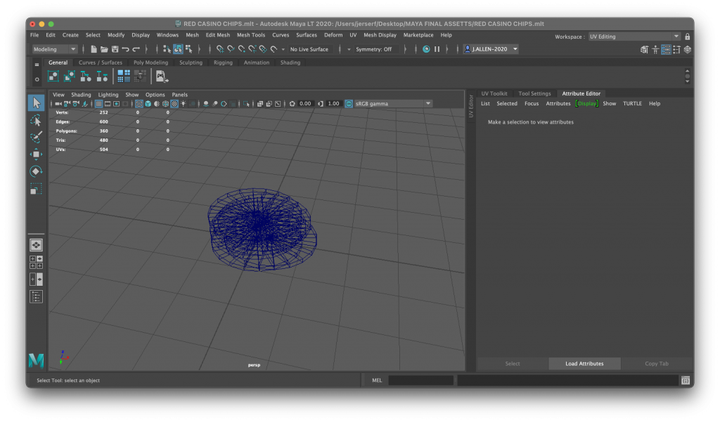 Here is the wireframe view of the stacked casino chips, all which are slightly off centred for a more realistic look. I attempted to stack them as you would see in a casino, hence why they’re not perfectly on top of each other. Although this was a very simple asset to create, I needed to make sure they were an appropriate size and be exactly circle to get the authentic feel of a casino chip. One thing I could’ve done to improve this asset would be to have designed more values for the chips and created a larger stack.