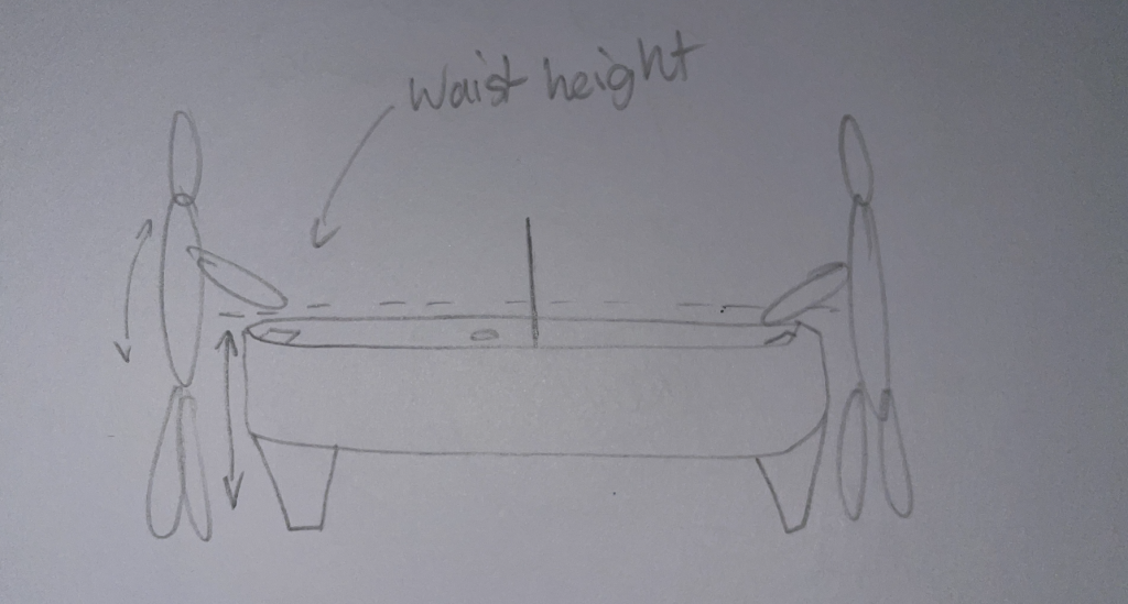 I created a quick sketch to show how the proportions of the machine can be represented. I estimated that the playing surface would be at waist height roughly so its not too high. but not too low that the user is bending over the machine an unnecessary amount.