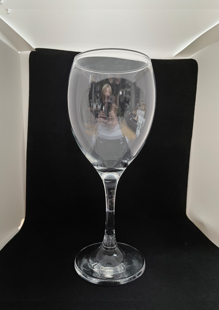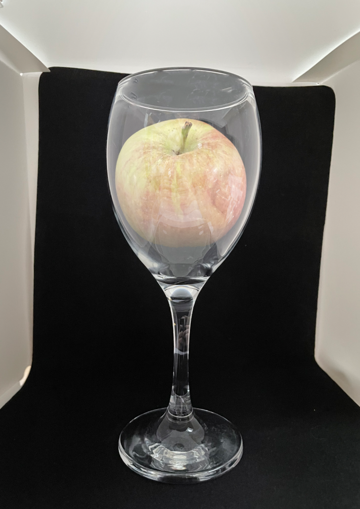 I was given the task of creating a simple conceptual design piece by combining a wine glass and an apple into one using photography and my chosen editing software. To do this, I photographed my apple and my wine glass separately, using a dark background to make the items easier to edit.
