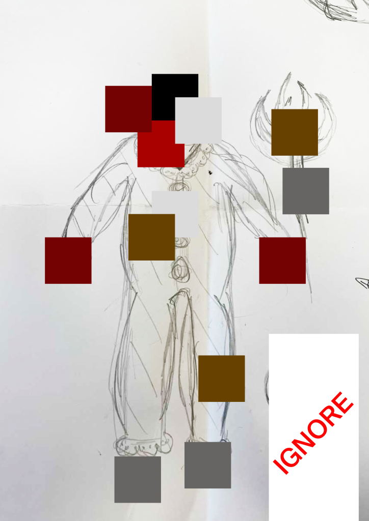With my characters environment and background, I have chosen to use a darker colour palette. This mainly includes browns and reds for the main aspect of the clothing as well as some other colours that would be used for details. Below is a diagram of the colours I will mainly be using, as well as a small note of what they will be used for.