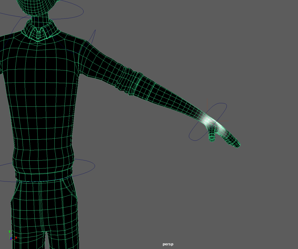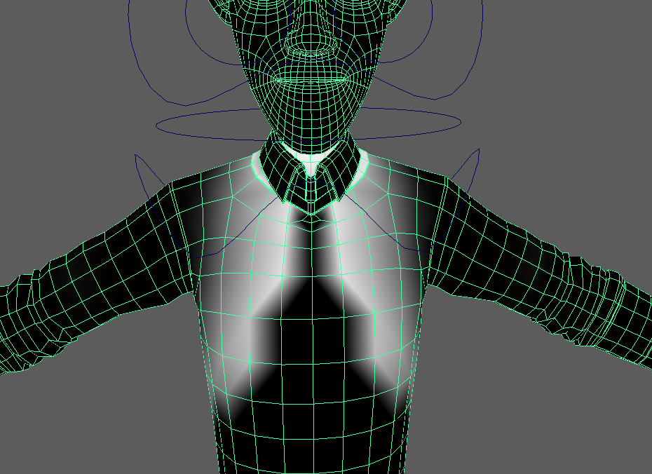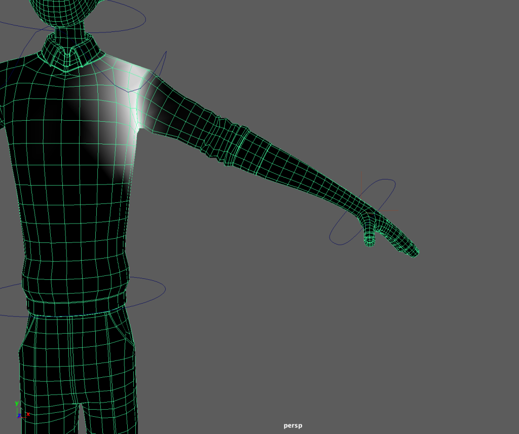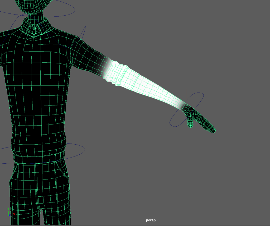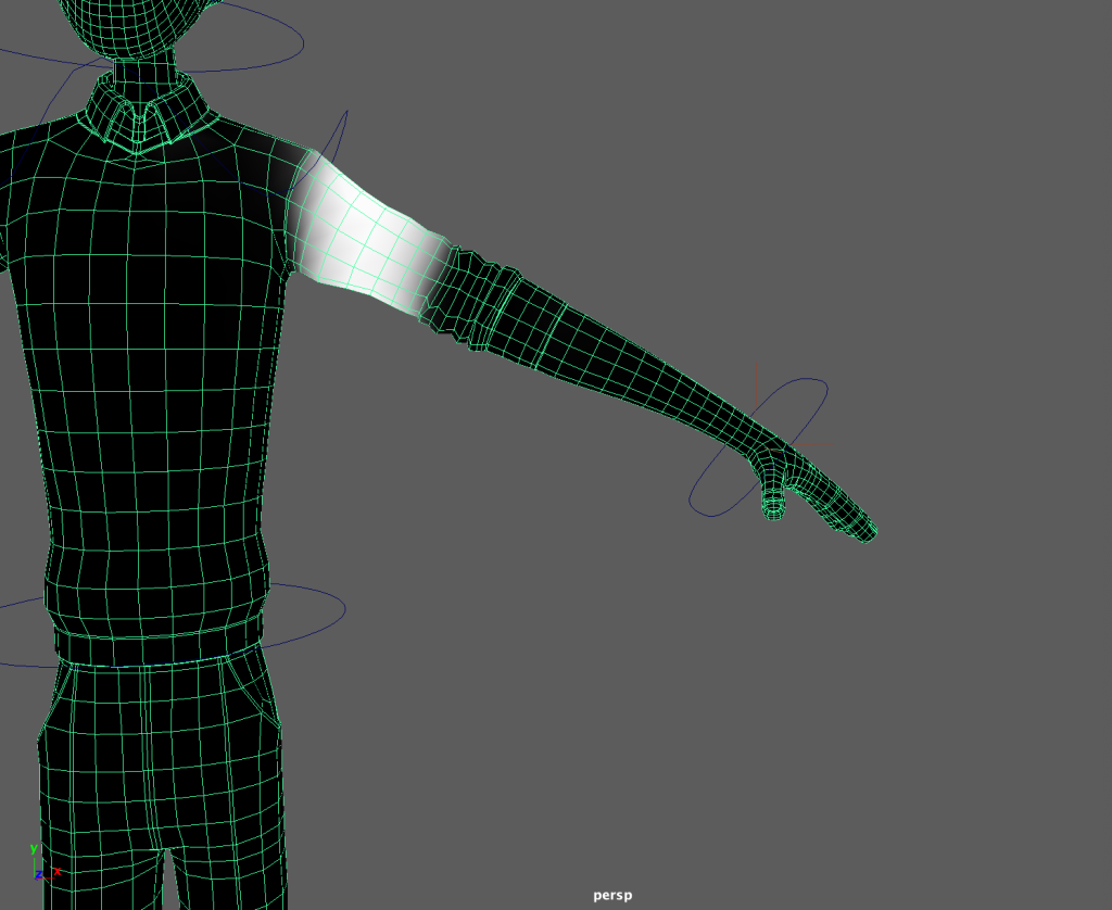 The next part I did was the arms. This was where I had most of my issues for a while due to the characters design which made it a little more difficult to get them right. Due to the characters sleeve, I had to paint inside the mesh which meant hiding the arms so I could access it. However after doing this and refining the outer parts, I was able to get a fully functioning arm that moved naturally.