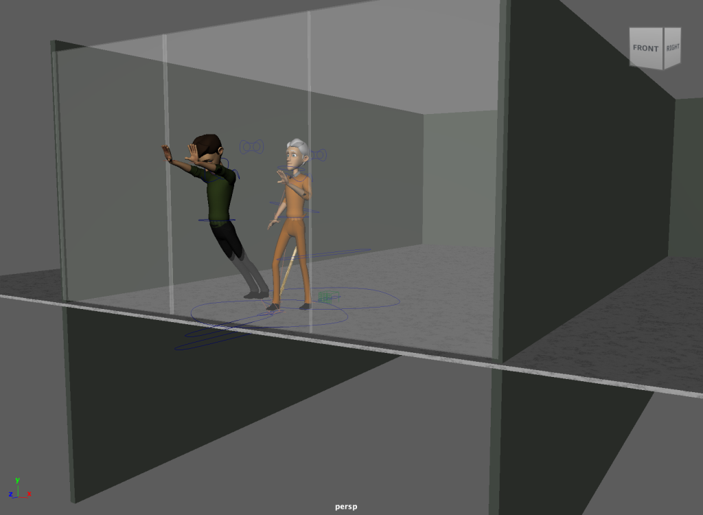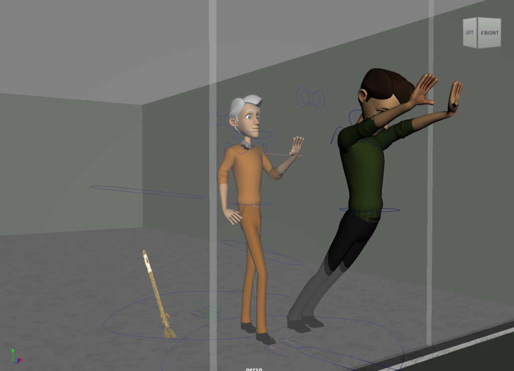 Furthermore you can see I have included an extra character into the animation. To make this look more effective, I duplicated my exiting character and altered the appearance to link to my previous character. The ‘enemy’ keeps the original clothing colours.