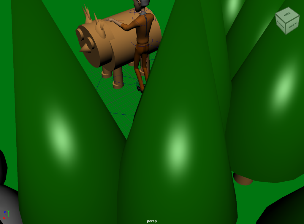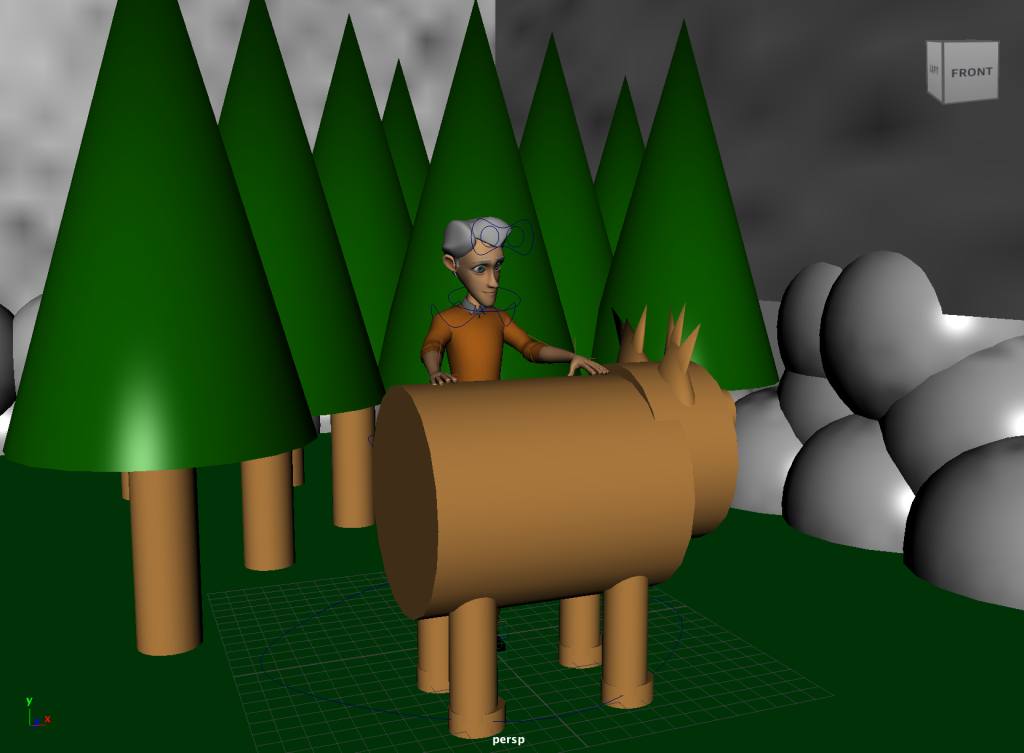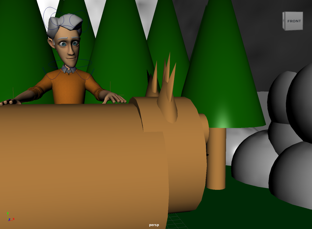 In the above screenshots, I have created a basic forest scene featuring trees, grass as well as stormy sky. In addition I have added rocks to the surrounding to add a little more depth to the scene. This animation has the cameras in the same direction which is why the props are all placed on one side.