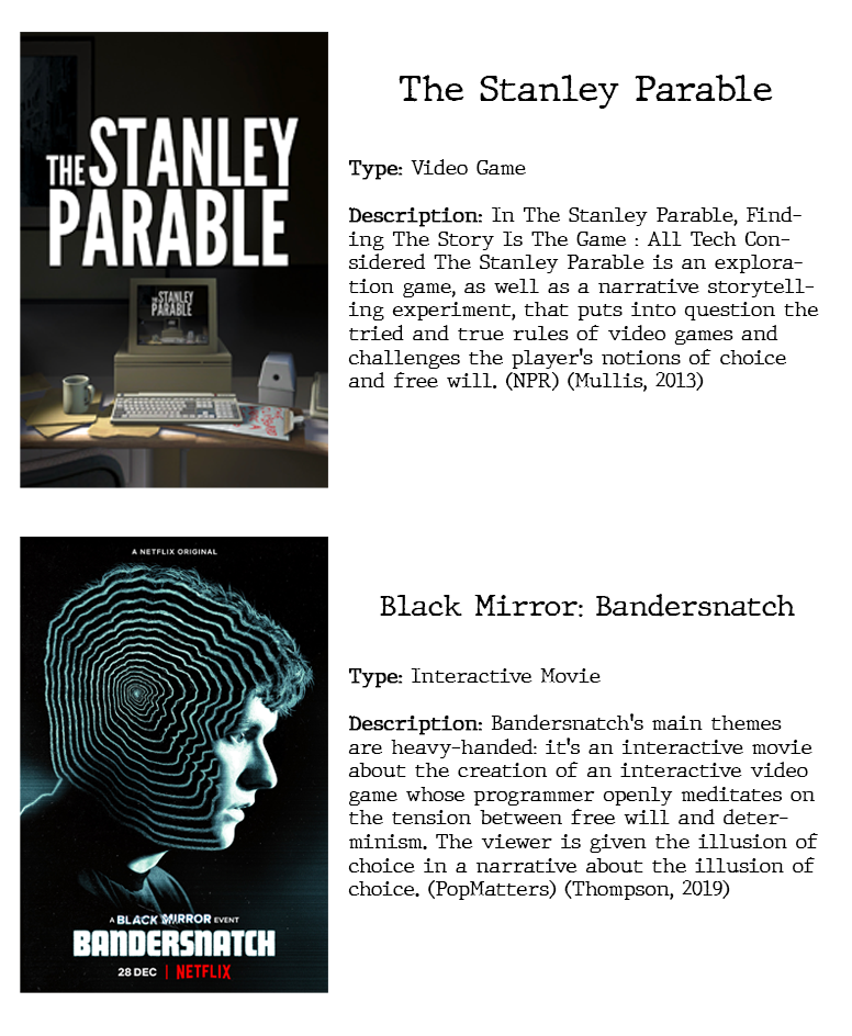 Thompson, S.C. (2019) ‘Black Mirror: Bandersnatch’ Amplifies What Happens to Us When We Experience Narrative Without Form, PopMatters. PopMatters. Available online: https://www.popmatters.com/black-mirror-bandersnatch-experience-narrative-2632952852.html [Accessed 10 Nov. 2022].