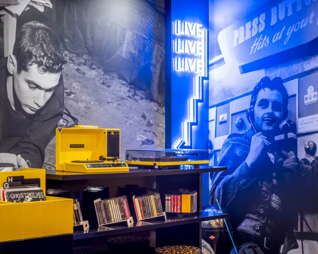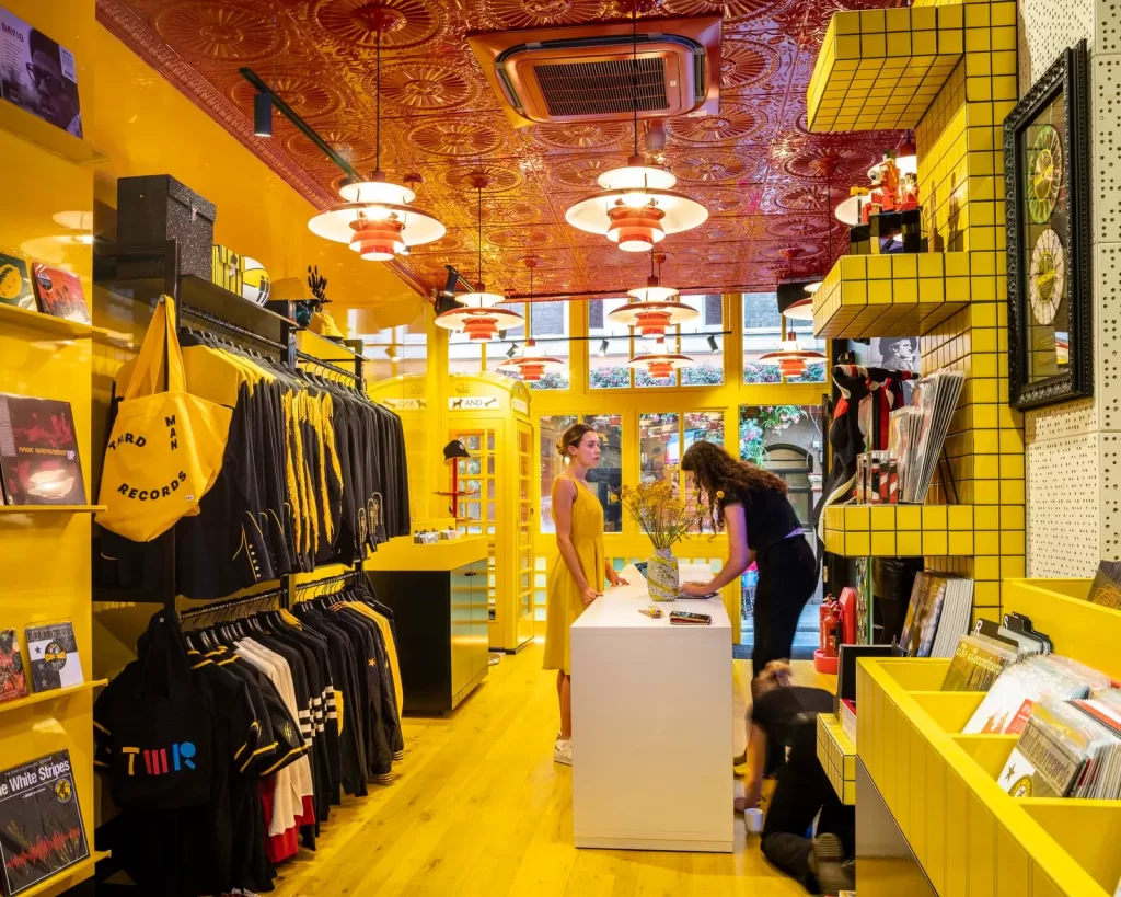 Furthermore, the store has attempted to create “a little unique experience, every 5 to 10 feet” (White, 2021) by adding installations such as a yellow telephone box which features a ‘music making phone’ as well as a vending machine that dispenses books. On top of this, they also have a recording booth which allows you to create music and incorporate it into your own vinyl record, which is something White is experienced with considering he opened a “record-pressing plant in Detroit”(Wallace, 2021).
