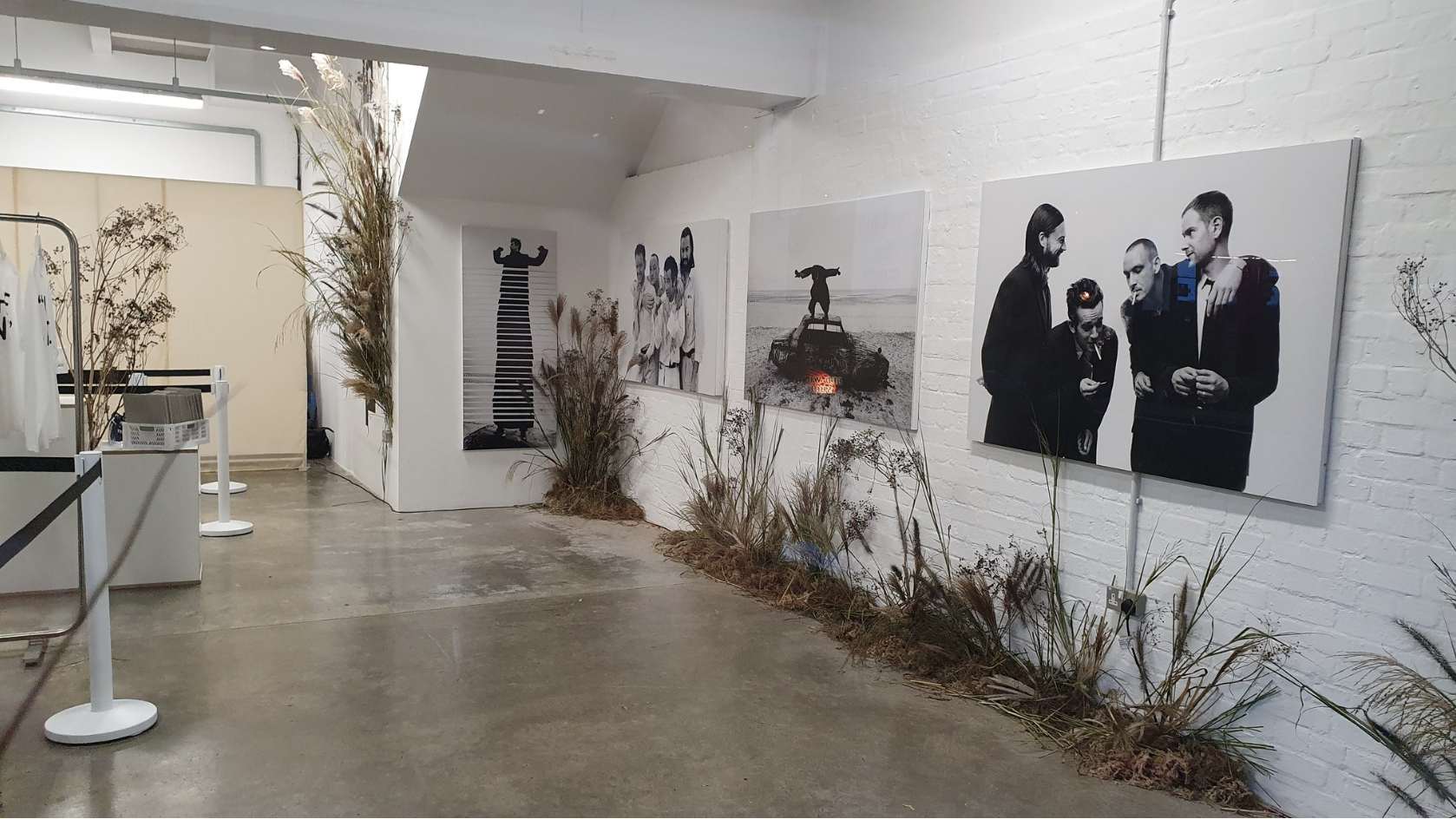 In addition I looked further than record stores for my research into retail and the interior within these. While sticking on the topic of music, I investigated the pop up shop held by The 1975 and Spotify to celebrate the bands newest album. Within this there is a mixture of brutalist design themes from both the architecture industry as well as the graphic design scene. The use of stone and monotonous coloured flowers creates themes of physical brutalist design, however this is used in contrast with window stickers (seen in Figure 7), monotone canvases as well as merchandise carrying similar themes. The canvas on the far left, seen in figure 5 for example has been edited to create a repeating effect on the band member. This is a method used frequently with text and images within the brutalist graphic design scene to amplify and express messages within the edited asset.