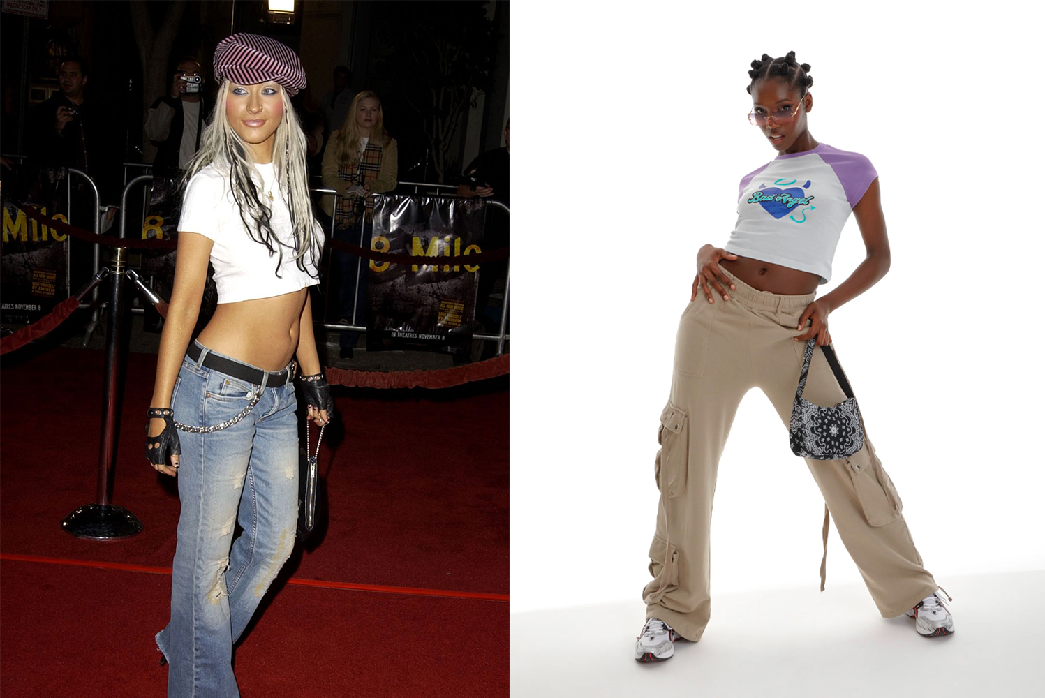 An example of this is seen in Figure 4 where a clothing brand called ‘Bad Handwriting’ has taken a y2k style piece called the ‘baby tee’ which is a cropped raglan t-shirt with a graphic on the front. This style of t-shirt was popular during the 2000’s and can be seen worn by singer Christina Aguilera on the left of figure 4. The fashion brand has taken something that was fashionable 20 years ago and added their own modern twist to appeal to the current consumer market.