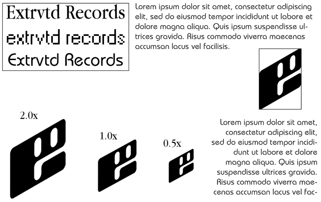 In order to begin developing my brand, I needed to decide on a name which was recognisable but also fit the brutalist aesthetic I want to create. Taking this into consideration, I decided on the name ‘extrvtd’ which is shortened from ‘extroverted’. I chose this name as the word extroverted means ‘outgoing’ and ‘confident’ which I believe describes the brutalist movement appropriately. Using this, I began creating a logo based on the word which I wanted to incorporate the letter E. Below is my initial solution to this;