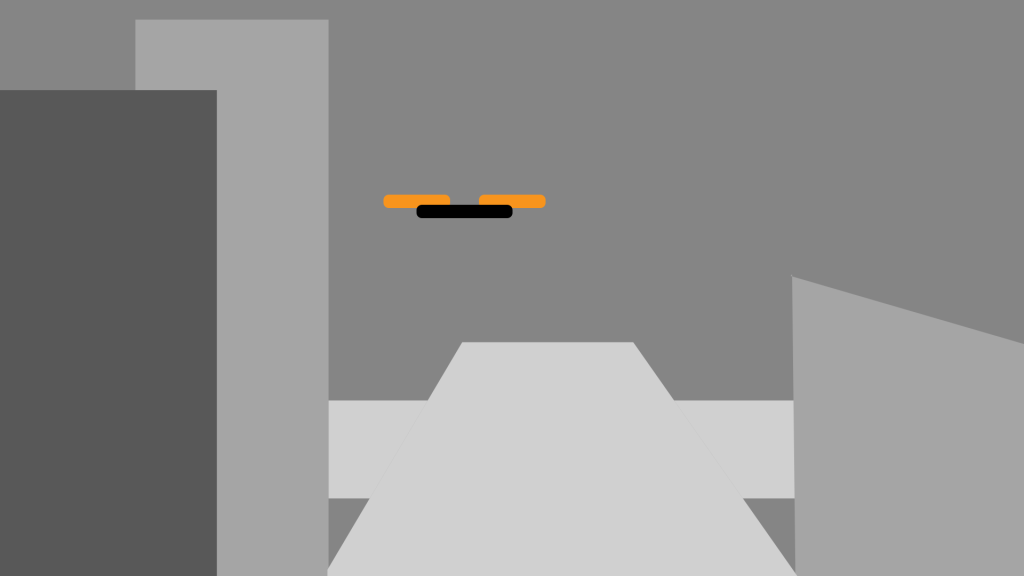 In addition to the animation of these assets, colour can be reconsidered within this area too. Since I am operating with a muted colour palette, using a bright coloured object within this environment will attract the users attention to this specific object and therefore the direction and destination. Below I have created a simple image of how an orange drone would look inside a city full of muted coloured buildings, therefore standing out and attracting the users attention to its flightpath: