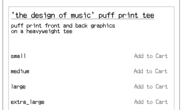 Figure 2. The product pages for both merchandise and the music products such as vinyl records. Featuring a song player at the bottom of the music page.