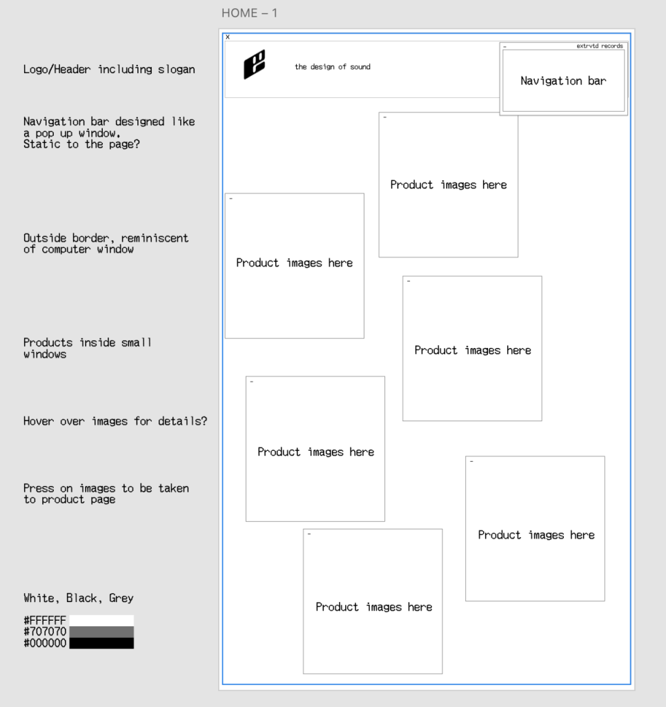 Since my concept is a brutalist record store, I decided the best way to present my concept would be through a website that is designed following the brutalist web design themes I researched previously. This website would house all of the assets and concepts that link to my idea such as the products, posters as well as other features you would expect to see on a e-commerce website.