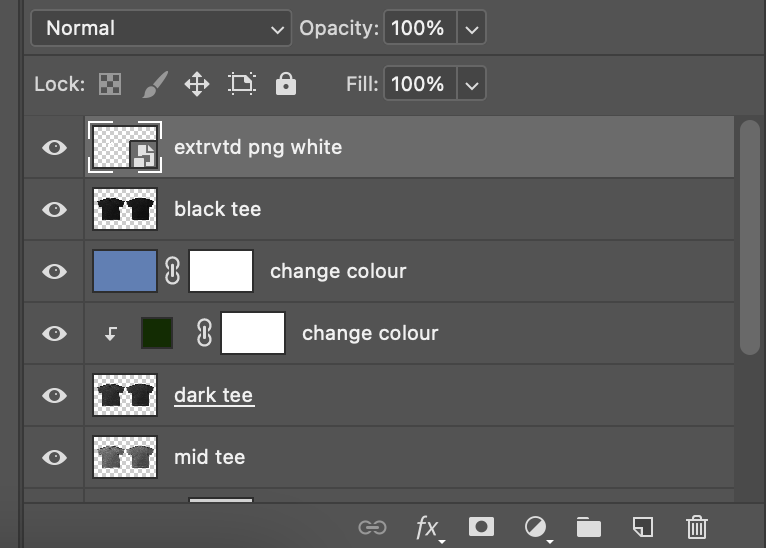 To display these t-shirts, I am using my own mock up I created which allows me to apply designs to preset t-shirt images, as well as altering the colour of the garments to fit the design.